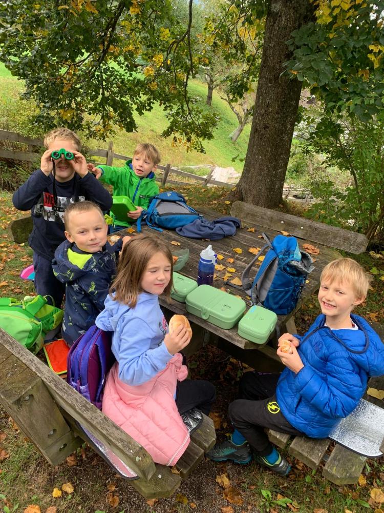 Die ersten Klassen wanderten zum Ulrichsbichl, die Zweiteler machten sich auf den Weg zum Labyrinth. 3a und 3c besuchten den Alten See und die vierten Klassen wanderten über den Vogelerlebnisweg.